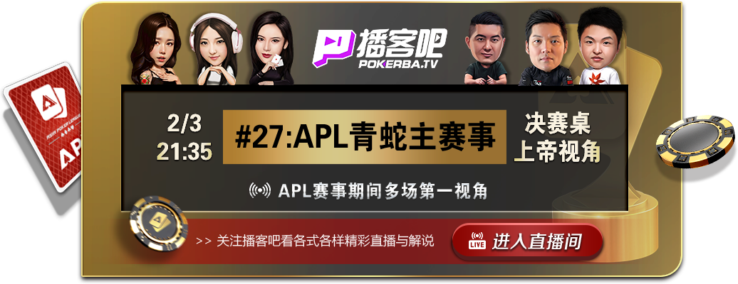 | 2月1日 | 22:40 | APL 系列: ¥550 奥马哈赏金赛 | ¥550 | ¥40,000 |